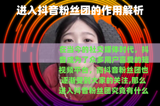 在当今的社交媒体时代,抖音成为了众多用户喜爱的短视频平台,而抖音粉丝团也逐渐受到大家的关注,那么进入抖音粉丝团究竟有什么用呢?