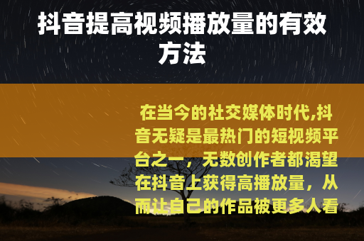 在当今的社交媒体时代,抖音无疑是最热门的短视频平台之一,无数创作者都渴望在抖音上获得高播放量,从而让自己的作品被更多人看到,实现个人价值和商业目标,抖音怎么提高视频的播放量和播放量大小呢?以下是一些实用的技巧。