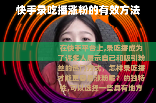 在快手平台上,录吃播成为了许多人展示自己和吸引粉丝的热门方式,怎样录吃播才能更容易涨粉呢?