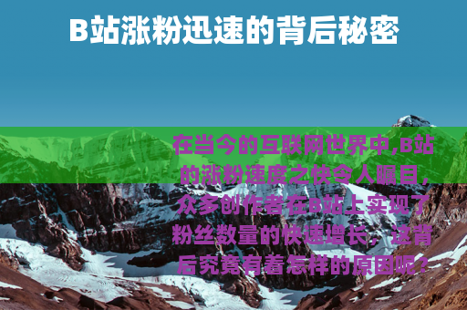在当今的互联网世界中,B站的涨粉速度之快令人瞩目,众多创作者在B站上实现了粉丝数量的快速增长,这背后究竟有着怎样的原因呢?
