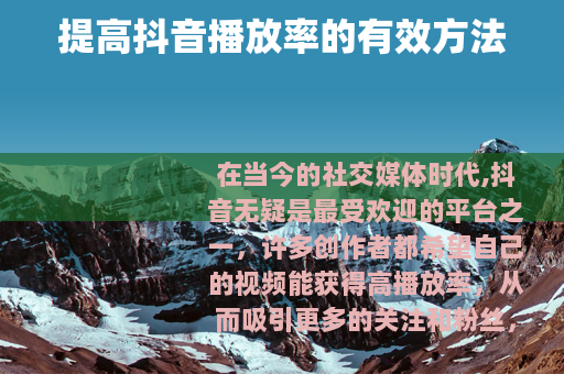 在当今的社交媒体时代,抖音无疑是最受欢迎的平台之一,许多创作者都希望自己的视频能获得高播放率,从而吸引更多的关注和粉丝,抖音标签怎么提高播放率呢?以下是一些实用的方法。