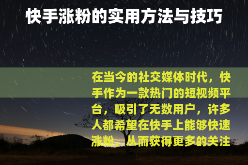 在当今的社交媒体时代,快手作为一款热门的短视频平台,吸引了无数用户,许多人都希望在快手上能够快速涨粉,从而获得更多的关注和机会,以下是一些关于快手怎么涨粉的实用方法。