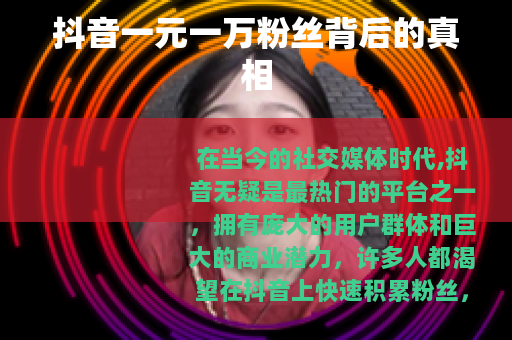 在当今的社交媒体时代,抖音无疑是最热门的平台之一,拥有庞大的用户群体和巨大的商业潜力,许多人都渴望在抖音上快速积累粉丝,以实现自己的各种目标,比如成为网红、推广产品或服务等,而市场上出现了一种声称“抖音一元一万粉丝”的现象,这看似是一个极具吸引力的捷径,但背后却隐藏着诸多不为人知的秘密。