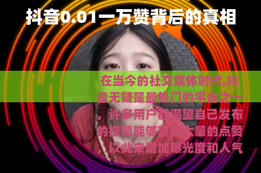 在当今的社交媒体时代,抖音无疑是最热门的平台之一,许多用户都渴望自己发布的视频能够获得大量的点赞,以此来增加曝光度和人气,而市场上也出现了一些声称可以用0.01元获得一万赞的服务,这看似极具吸引力的背后,究竟有着怎样的真相呢?