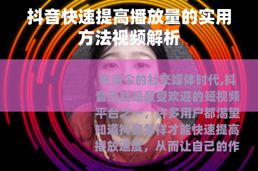 希望这些关于抖音怎样快速提高播放速度的方法能够对你有所帮助,如果你还有其他疑问,欢迎继续探索和学习,不断优化自己的抖音创作之路。