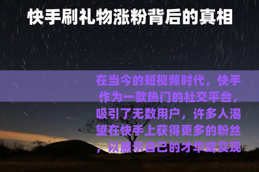 在当今的短视频时代,快手作为一款热门的社交平台,吸引了无数用户,许多人渴望在快手上获得更多的粉丝,以展示自己的才华或实现商业价值,有一种现象备受关注,那就是刷礼物涨粉。