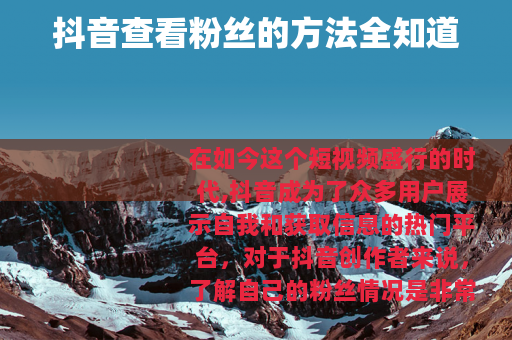 在如今这个短视频盛行的时代,抖音成为了众多用户展示自我和获取信息的热门平台,对于抖音创作者来说,了解自己的粉丝情况是非常重要的,那么抖音在哪查看粉丝呢?下面就为大家详细介绍。