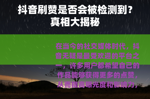 在当今的社交媒体时代,抖音无疑是最受欢迎的平台之一,许多用户都希望自己的作品能够获得更多的点赞,从而提高曝光度和影响力,抖音刷赞这个话题就引起了广泛的关注,抖音刷赞会不会被检测到呢?这是很多人心中的疑问。