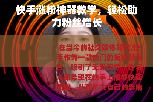 在当今的社交媒体时代,快手作为一款热门的短视频平台,吸引了无数用户,许多人都希望在快手上能够快速涨粉,从而扩大自己的影响力和社交圈,就来给大家分享一些实用的快手涨粉神器教学方法。