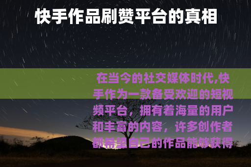 在当今的社交媒体时代,快手作为一款备受欢迎的短视频平台,拥有着海量的用户和丰富的内容,许多创作者都希望自己的作品能够获得更多的关注和点赞,以提高作品的曝光度和影响力,在这个过程中,一些所谓的快手作品刷赞平台开始出现,吸引了不少人的目光。