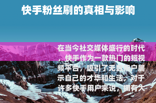 在当今社交媒体盛行的时代,快手作为一款热门的短视频平台,吸引了无数用户展示自己的才华和生活,对于许多快手用户来说,拥有大量的粉丝是他们追求的目标之一,因为粉丝数量往往被视为影响力和受欢迎程度的象征,这也催生了一种现象——快手粉丝刷。