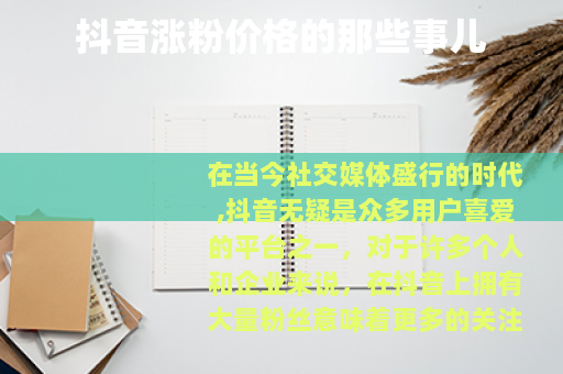 在当今社交媒体盛行的时代,抖音无疑是众多用户喜爱的平台之一,对于许多个人和企业来说,在抖音上拥有大量粉丝意味着更多的关注、更高的影响力以及潜在的商业机会,抖音涨粉成为了一个热门话题,而与之相关的抖音涨粉价格也备受关注。