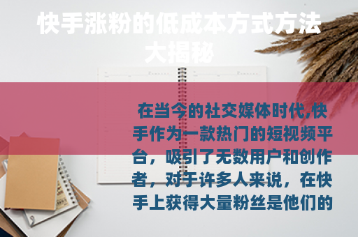 在当今的社交媒体时代,快手作为一款热门的短视频平台,吸引了无数用户和创作者,对于许多人来说,在快手上获得大量粉丝是他们的目标之一,而如何以最低的成本实现涨粉就成了大家关注的焦点。