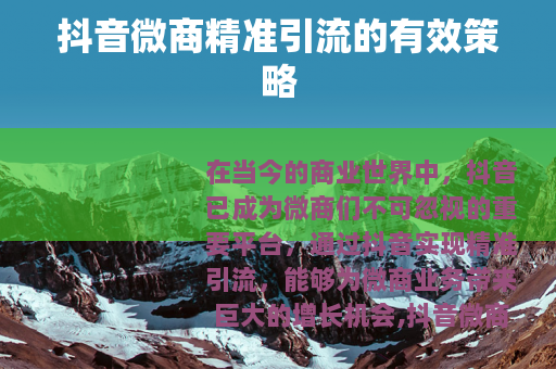 在当今的商业世界中,抖音已成为微商们不可忽视的重要平台,通过抖音实现精准引流,能够为微商业务带来巨大的增长机会,抖音微商怎样才能做到精准引流呢?