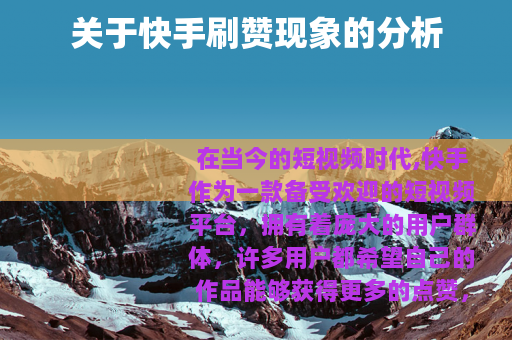 在当今的短视频时代,快手作为一款备受欢迎的短视频平台,拥有着庞大的用户群体,许多用户都希望自己的作品能够获得更多的点赞,以提高曝光度和知名度,在追求点赞数量的过程中,出现了一种所谓“快手刷赞全网最低价”的现象,值得我们深入探讨。