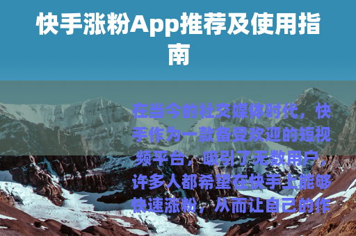 在当今的社交媒体时代,快手作为一款备受欢迎的短视频平台,吸引了无数用户,许多人都希望在快手上能够快速涨粉,从而让自己的作品获得更多的关注和认可,这时候,一些快手涨粉app就应运而生了。