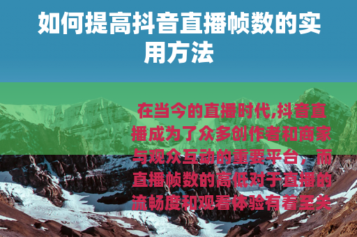 在当今的直播时代,抖音直播成为了众多创作者和商家与观众互动的重要平台,而直播帧数的高低对于直播的流畅度和观看体验有着至关重要的影响,怎么提高抖音直播帧数呢?以下是一些实用的方法。