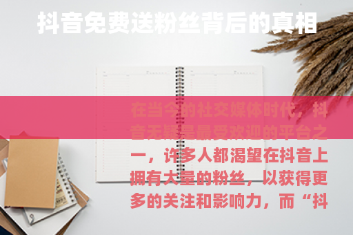在当今的社交媒体时代,抖音无疑是最受欢迎的平台之一,许多人都渴望在抖音上拥有大量的粉丝,以获得更多的关注和影响力,而“抖音免费送粉丝”这样的说法也随之出现,吸引了不少人的目光。
