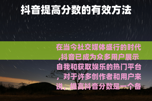 在当今社交媒体盛行的时代,抖音已成为众多用户展示自我和获取娱乐的热门平台,对于许多创作者和用户来说,提高抖音分数是一个备受关注的话题。