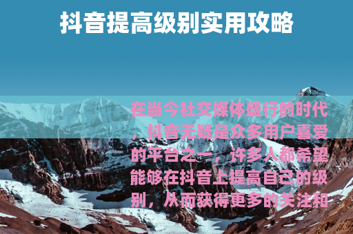 在当今社交媒体盛行的时代,抖音无疑是众多用户喜爱的平台之一,许多人都希望能够在抖音上提高自己的级别,从而获得更多的关注和机会,抖音怎么提高级别呢?以下是一些实用的方法。