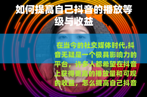 在当今的社交媒体时代,抖音无疑是一个极具影响力的平台,许多人都希望在抖音上获得更高的播放量和可观的收益,怎么提高自己抖音的播放等级和收益呢?