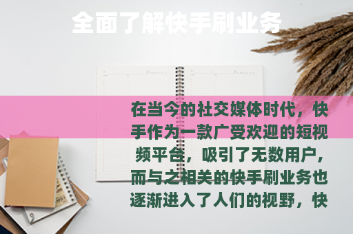 在当今的社交媒体时代,快手作为一款广受欢迎的短视频平台,吸引了无数用户,而与之相关的快手刷业务也逐渐进入了人们的视野。