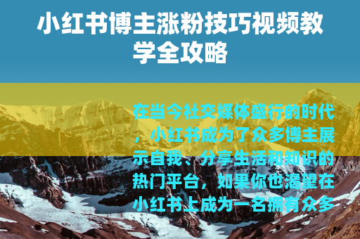 在当今社交媒体盛行的时代,小红书成为了众多博主展示自我、分享生活和知识的热门平台,如果你也渴望在小红书上成为一名拥有众多粉丝的博主,那么掌握一些有效的涨粉技巧是至关重要的,以下是为您精心准备的小红书博主涨粉技巧视频教学全攻略。 创作是关键,要确保你的视频内容具有独特性和吸引力,可以从自身的兴趣爱好、专业知识或擅长的领域出发,制作出有价值、有趣味的视频,如果你擅长烹饪,那么可以制作一系列精美的美食制作视频,详细展示每一道菜肴的制作过程和独特的烹饪技巧,让观众在观看的过程中不仅能够学到知识,还能感受到烹饪的乐趣。