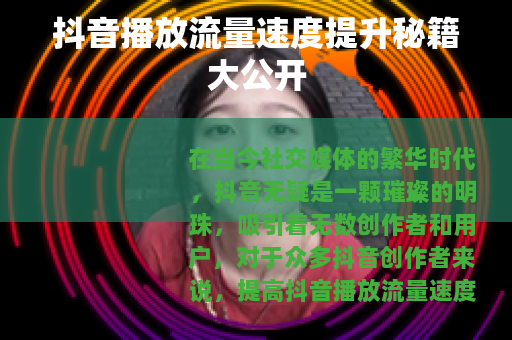 提高抖音播放流量速度需要从多个方面入手,不断优化视频内容和运营策略,只要坚持不懈地努力,不断学习和尝试新的方法,相信您的抖音账号一定能够获得更多的播放量和关注,在抖音的舞台上绽放出属于自己的光彩。