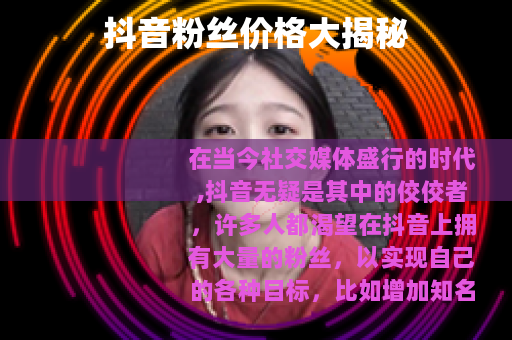 在当今社交媒体盛行的时代,抖音无疑是其中的佼佼者,许多人都渴望在抖音上拥有大量的粉丝,以实现自己的各种目标,比如增加知名度、推广产品或服务等,抖音粉丝究竟多少钱呢?