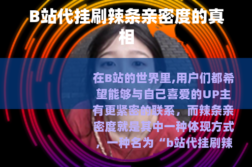 在B站的世界里,用户们都希望能够与自己喜爱的UP主有更紧密的联系,而辣条亲密度就是其中一种体现方式,一种名为“b站代挂刷辣条亲密度”的服务悄然兴起。