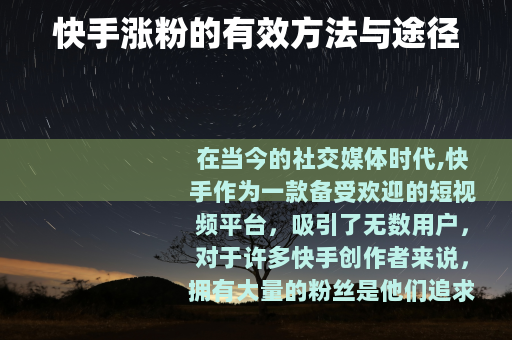 在快手涨粉需要付出时间和精力,通过合法合规、积极健康的方式去努力创作和运营,才能真正实现粉丝数量的稳步增长,为自己在快手平台上的发展打下坚实的基础。