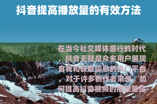 要提高抖音视频的播放量,需要从多个方面入手,不断优化和改进自己的创作和运营策略,通过提供高质量的内容、精心制作标题和封面、合理利用抖音的功能、保持稳定更新以及积极与观众互动等方法,相信你的抖音视频一定能获得更多的播放量,在抖音平台上取得更好的成绩。