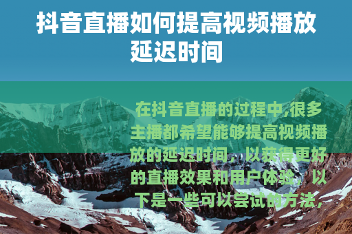 在抖音直播的过程中,很多主播都希望能够提高视频播放的延迟时间,以获得更好的直播效果和用户体验,以下是一些可以尝试的方法。