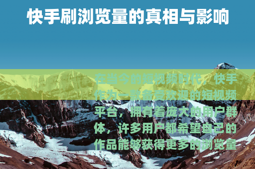 在当今的短视频时代,快手作为一款备受欢迎的短视频平台,拥有着庞大的用户群体,许多用户都希望自己的作品能够获得更多的浏览量,从而获得更多的关注和认可,在这个过程中,出现了一种所谓的“快手刷浏览量”的现象,值得我们深入探讨。