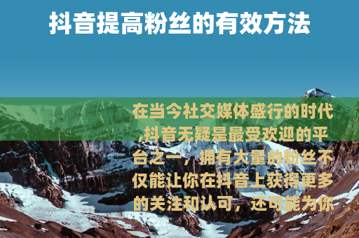 在当今社交媒体盛行的时代,抖音无疑是最受欢迎的平台之一,拥有大量的粉丝不仅能让你在抖音上获得更多的关注和认可,还可能为你带来各种商业机会,抖音如何提高粉丝呢?以下是一些实用的方法。