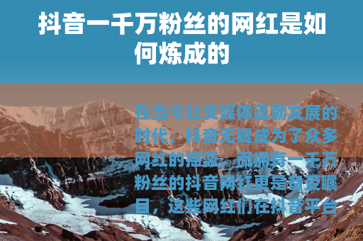 在当今社交媒体蓬勃发展的时代,抖音无疑成为了众多网红的摇篮,而拥有一千万粉丝的抖音网红更是备受瞩目,这些网红们在抖音平台上展现出了非凡的魅力和影响力,吸引着无数人的目光。