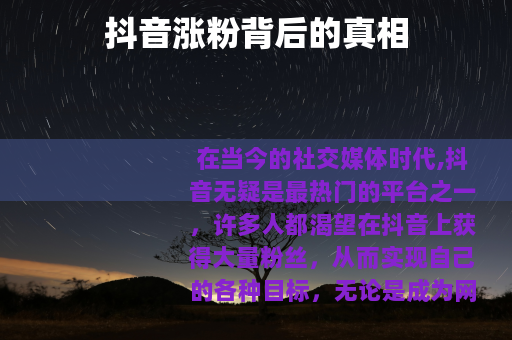 在当今的社交媒体时代,抖音无疑是最热门的平台之一,许多人都渴望在抖音上获得大量粉丝,从而实现自己的各种目标,无论是成为网红、推广产品还是仅仅为了获得更多的关注和认可,一个问题始终萦绕在大家心头:抖音涨粉是真的吗?