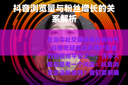 抖音浏览量与粉丝增长之间存在着密切的关系,但不是绝对的因果关系,通过不断优化自己的视频创作和运营策略,才能在抖音上获得更多的关注和粉丝,从而在这个充满机遇的平台上取得更好的发展。
