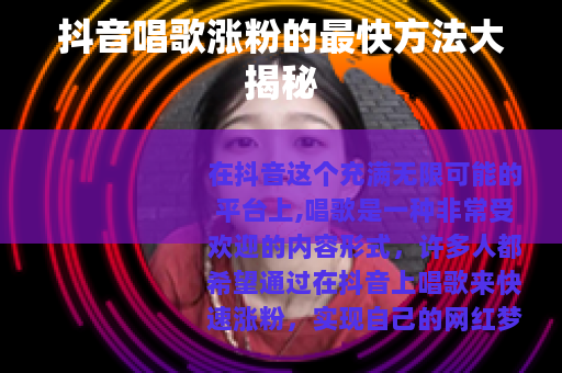 在抖音这个充满无限可能的平台上,唱歌是一种非常受欢迎的内容形式,许多人都希望通过在抖音上唱歌来快速涨粉,实现自己的网红梦想,抖音如何唱歌才涨粉丝最快呢?以下是一些实用的方法。