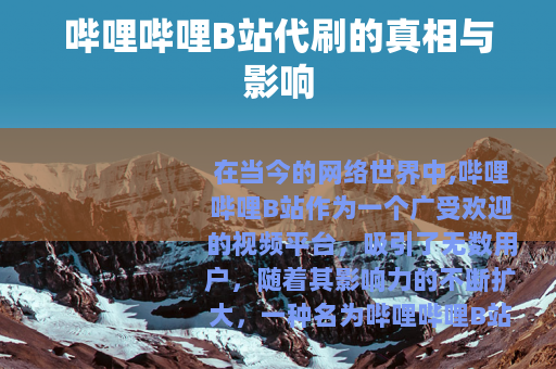 在当今的网络世界中,哔哩哔哩B站作为一个广受欢迎的视频平台,吸引了无数用户,随着其影响力的不断扩大,一种名为哔哩哔哩B站代刷的现象也逐渐兴起。
