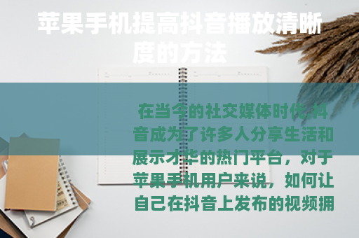 在当今的社交媒体时代,抖音成为了许多人分享生活和展示才华的热门平台,对于苹果手机用户来说,如何让自己在抖音上发布的视频拥有更高的播放清晰度,是一个备受关注的问题,以下是一些可以帮助苹果手机提高抖音播放清晰度的有效方法。