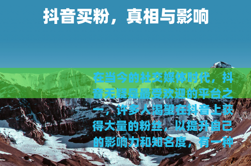 在当今的社交媒体时代,抖音无疑是最受欢迎的平台之一,许多人渴望在抖音上获得大量的粉丝,以提升自己的影响力和知名度,有一种现象逐渐兴起,那就是抖音买粉。