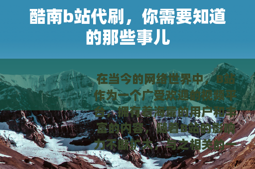 在当今的网络世界中,B站作为一个广受欢迎的视频平台,拥有着海量的用户和丰富的内容,随着B站的影响力不断扩大,与之相关的一些服务也应运而生,其中就包括酷南b站代刷。