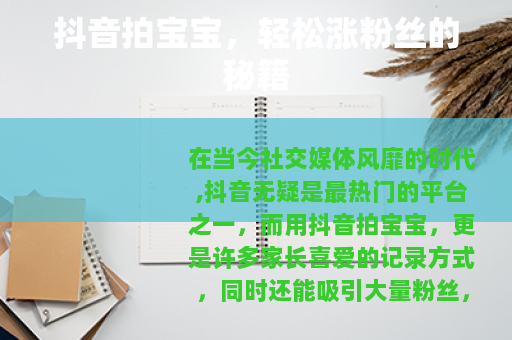 在当今社交媒体风靡的时代,抖音无疑是最热门的平台之一,而用抖音拍宝宝,更是许多家长喜爱的记录方式,同时还能吸引大量粉丝,让宝宝成为小小的网络明星,就来和大家分享一些抖音拍宝宝涨粉丝的实用技巧。