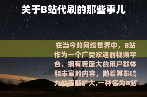 在当今的网络世界中,B站作为一个广受欢迎的视频平台,拥有着庞大的用户群体和丰富的内容,随着其影响力的不断扩大,一种名为B站代刷的现象也逐渐进入了人们的视野。