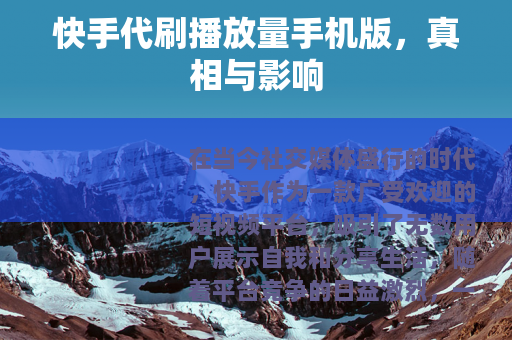 在当今社交媒体盛行的时代,快手作为一款广受欢迎的短视频平台,吸引了无数用户展示自我和分享生活,随着平台竞争的日益激烈,一些人开始寻求捷径来获取更多的关注和播放量,快手代刷播放量手机版便应运而生。