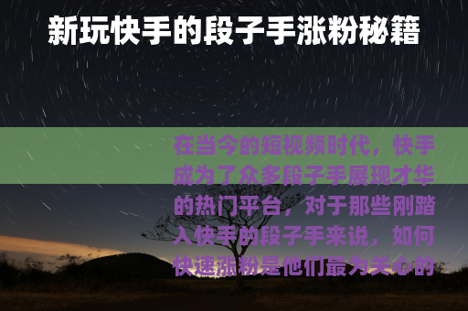 在当今的短视频时代,快手成为了众多段子手展现才华的热门平台,对于那些刚踏入快手的段子手来说,如何快速涨粉是他们最为关心的问题,以下是一些实用的方法,能帮助新玩快手的段子手们有效提升粉丝量。