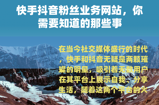 在当今社交媒体盛行的时代,快手和抖音无疑是两颗璀璨的明星,吸引着无数用户在其平台上展示自我、分享生活,随着这两个平台的火爆,与之相关的快手抖音粉丝业务网站也如雨后春笋般涌现出来。