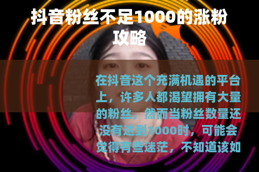 虽然抖音粉丝没有1000可能会面临一些挑战,但通过以上这些方法的持续努力和实践,你一定可以逐步实现涨粉的目标,在抖音平台上积累起属于自己的粉丝群体,为未来的发展打下坚实的基础。