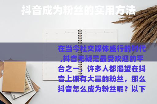 在当今社交媒体盛行的时代,抖音无疑是最受欢迎的平台之一,许多人都渴望在抖音上拥有大量的粉丝,那么抖音怎么成为粉丝呢?以下是一些实用的方法。